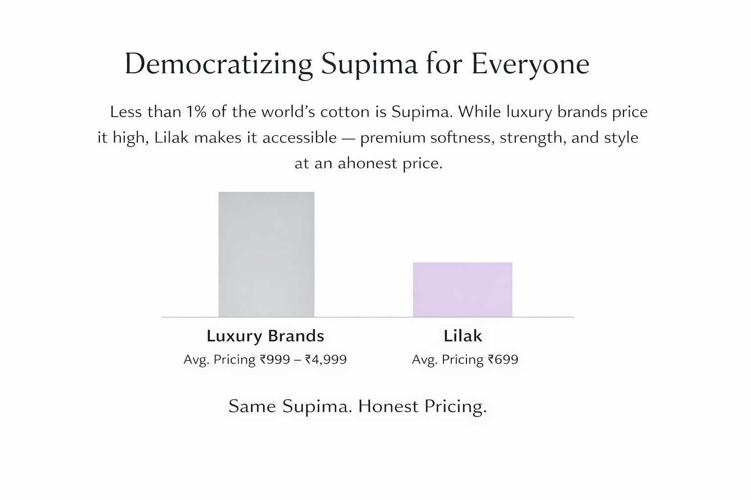 “At Lilak, we believe luxury shouldn’t be exclusive.We’rehere to democratize Supima cotton — offering the world’s softest,strongestcotton in timeless T-shirts at prices everyone can afford.”